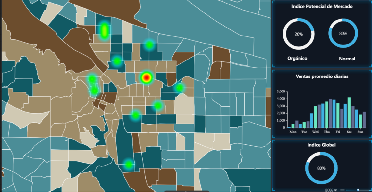 Proporcionar una herramienta de información interactiva, intuitiva y fácil de usar, que acompañe la toma de decisiones al permitir el cruce y análisis de todos los datos disponibles y relevantes para tu negocio. Estos datos se visualizan en mapas y paneles dinámicos, con la posibilidad de aplicar criterios personalizados de manera inmediata y adaptada a necesidades específicas.